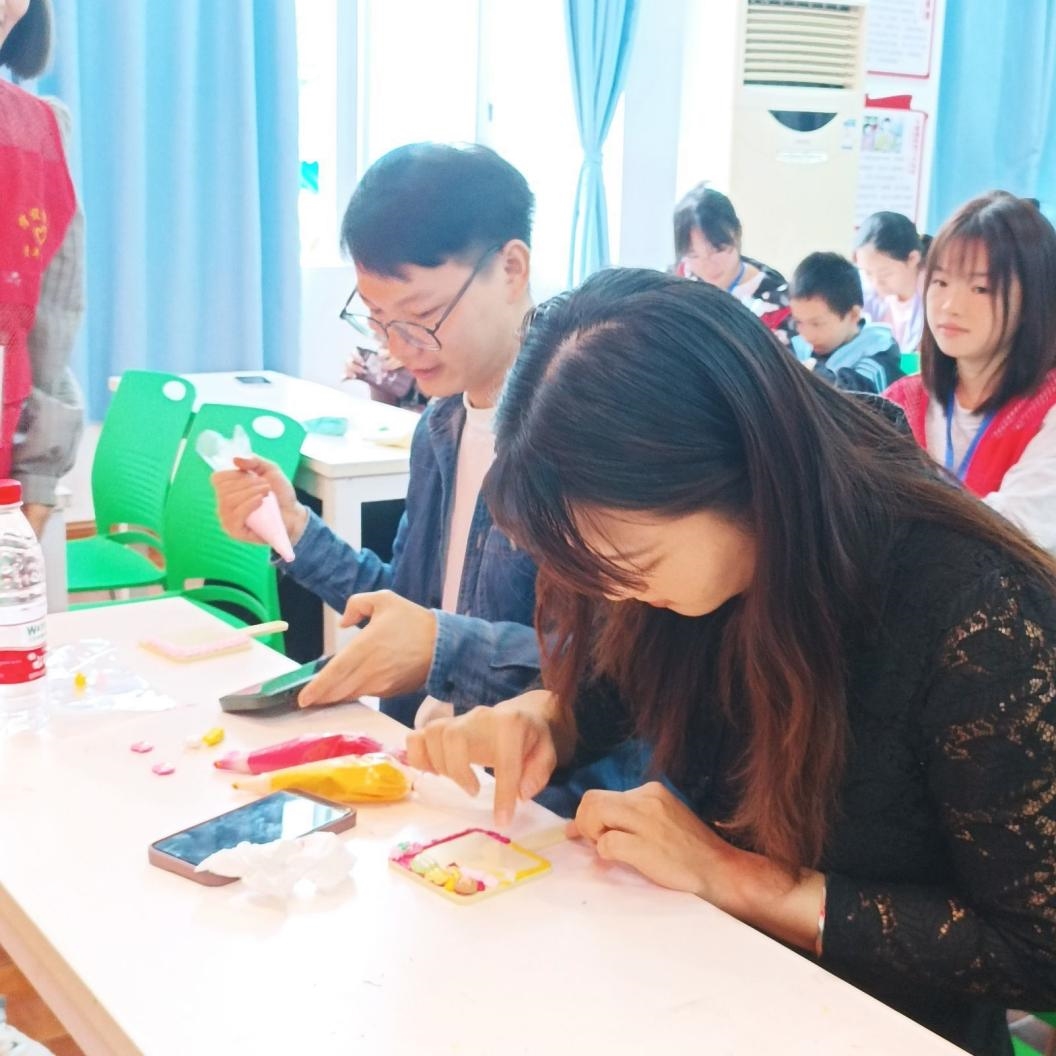 信息与设计学院于2023年10月21日联合“明秀青空间”开展了“奶油胶镜子制作”主题趣味活动。本次活动共有30位小朋友参加,辅导员杨春生、叶新萍以及志愿者们共同带领小朋友们一起动手创作一个属于自己的“奶油胶镜子”。