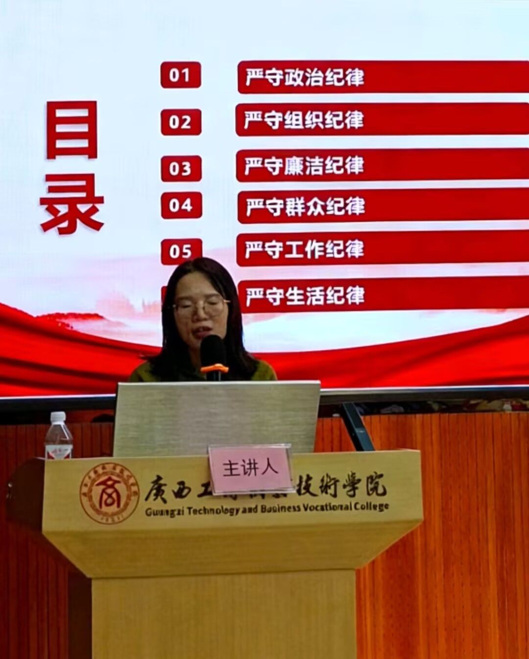党课最后,梁莉莉老师对全体入党积极分子提出殷切期望。她强调,作为党的后备力量,大家要深刻认识遵守党纪国法的重要性,从现在做起,以党员标准严格要求自己,不断增强纪律意识和规矩意识。要自觉学习党的理论知识,主动对照党的六大纪律检视言行,在专业学习、社会实践和日常生活中发挥模范作用。她希望学员们将纪律要求内化于心、外化于行,坚定理想信念,积极向党组织靠拢,努力成长为严守纪律、对党忠诚的合格党员,在实现中华民族伟大复兴的征程中贡献青春力量。