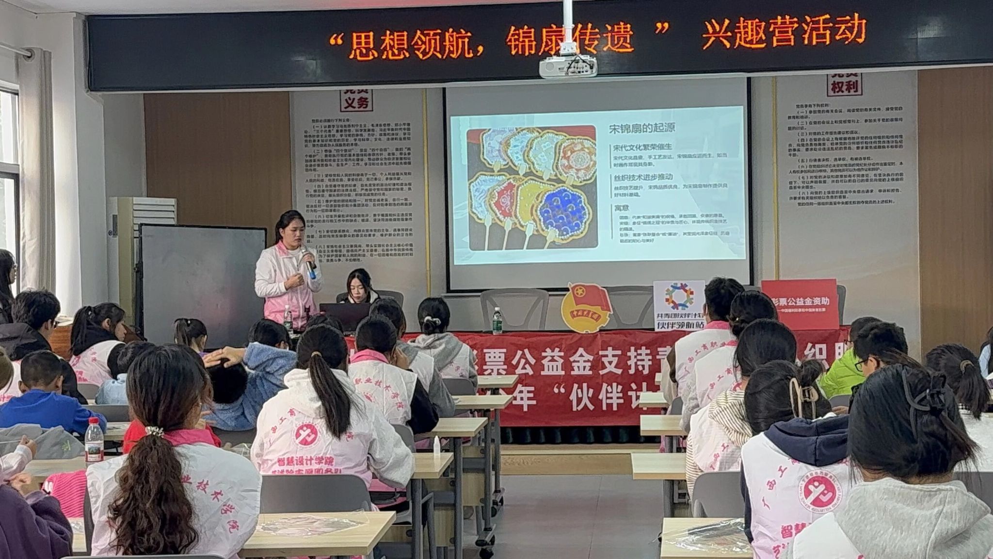 2025 年 12 月 14 日,智慧设计学院 “艺述绘” 青年志愿服务队携宋锦团扇制作技艺走进明秀社区,为孩子们搭建起一座触摸非遗、对话传统的文化桥梁。这场以 “团扇承古韵·志愿传文脉” 为主题的活动,让千年宋锦的经纬与童真童趣的想象碰撞出别样火花。