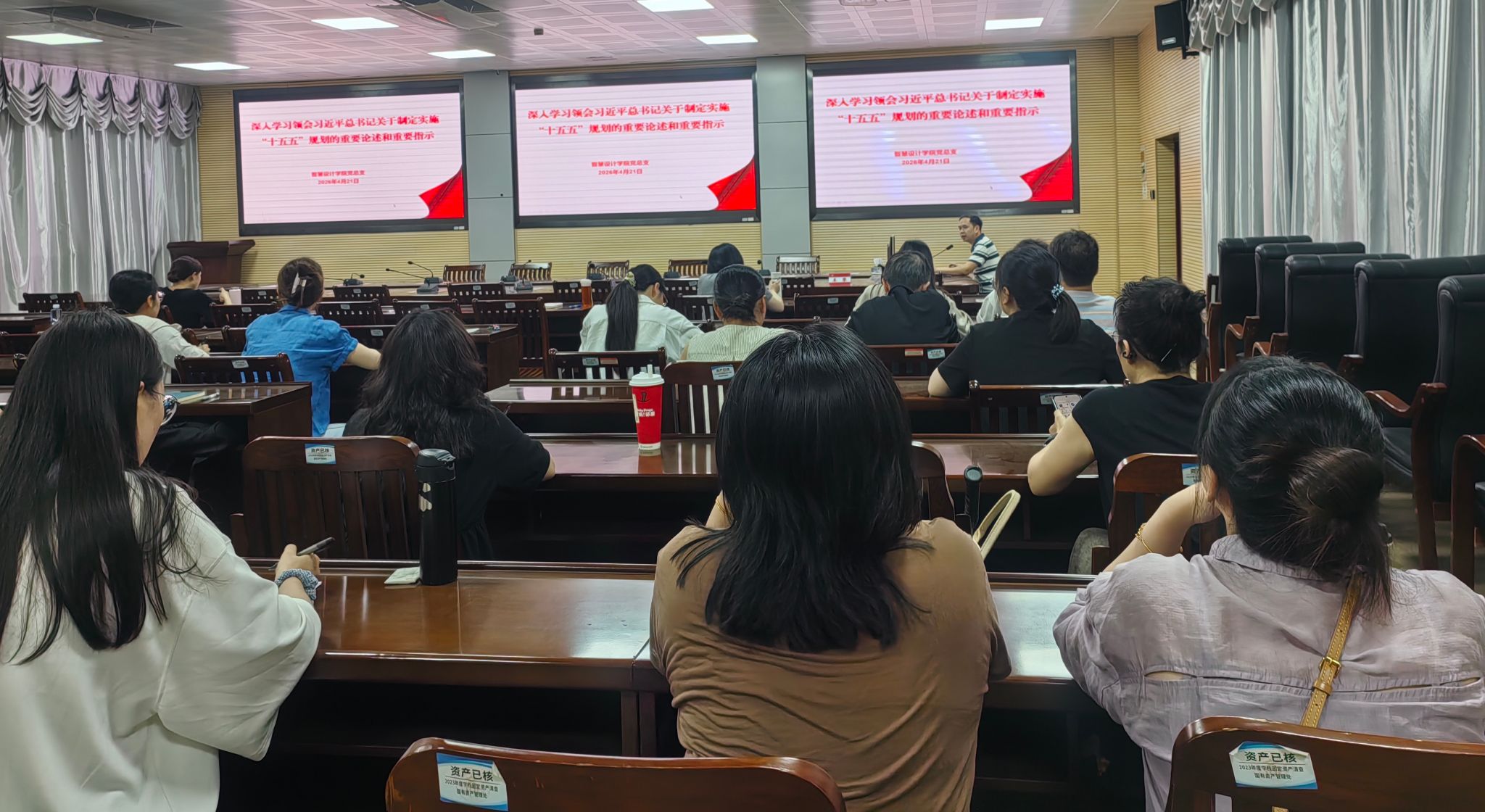 为深入学习贯彻习近平总书记关于制定实施“十五五”规划的重要论述和重要指示精神,精准把握国家战略导向,推动学院事业高质量发展,4月21日下午,智慧设计学院党总支在鹏飞校区2119会议室召开专题学习会。学院全体党员教师参加学习,会议由学院党总支副书记唐剑主持。